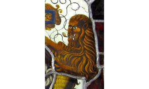Kabinettscheibe „Wappenscheibe“, 16. Jh. Reinigung der Oberfläche, Klebung gebrochener Bleiruten und Glasscheiben, Klebung und Verfüllung offener Fugen zwischen Glas und Bleiruten. Nachzustand, Kartierung von Vorzustand und Maßnahmen.Abbildung mit freundlicher Genehmigung des Franziskanermuseums Villingen-Schwenningen, Inv.-Nr. 11858, Foto: Lucie Selb & Melanie Konrad GbR, 2015.