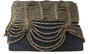 Brustschmuck aus Afrika, Straußeneierschalen, Leder, Pflanzenfasern. Reinigung des Objektes und Anfertigung einer formunterstützenden Aufbewahrungs- und Präsentationshilfe. Vorzustand, Nachzustand.Abbildung mit freundlicher Genehmigung des Museums im Ritterhaus, Offenburg, Inv.-Nr. OF2528a, Foto: Lucie Selb & Melanie Konrad GbR, 2019.