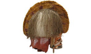 Maske aus der Südsee, pflanzliche Materialien, Farbfassung, Gips, Glas. Reinigungsmaßnahmen. Nachzustand.Abbildung mit freundlicher Genehmigung des Museums im Ritterhaus, Offenburg, Inv.-Nr. OF2631, Foto: Lucie Selb & Melanie Konrad GbR, 2017.