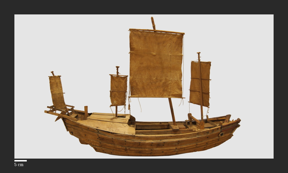 Schiffsmodell, Modell einer Dschunke, China, Ende 19. Jh., pflanzliche Materialien, Metall. Reinigung. Nachzustand.Abbildung mit freundlicher Genehmigung des Museums im Ritterhaus, Offenburg, Foto: Lucie Selb & Melanie Konrad GbR, 2017.