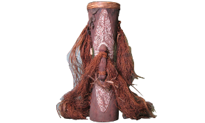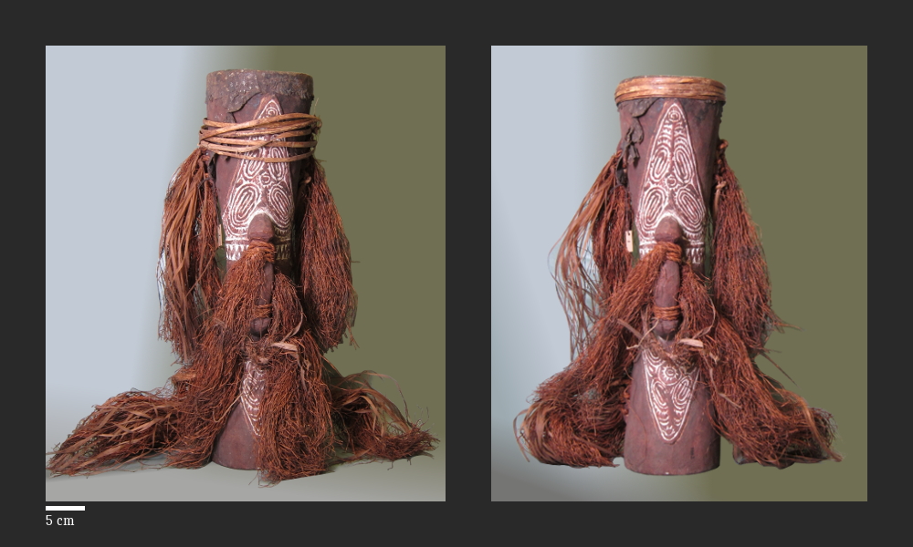 Trommel aus der Südsee, pflanzliche Materialien, Haut, Farbfassung. Reinigung und Sicherung von Brüchen. Vorzustand, Nachzustand.Abbildung mit freundlicher Genehmigung des Museums im Ritterhaus, Offenburg, Inv.-Nr. OF2662, Foto: Lucie Selb & Melanie Konrad GbR, 2017.