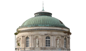 Frauenfiguren der Rotunde des Vierordtbades Karlsruhe, Zinkguss mit Farbfassung, um 1872. Reinigung der Oberfläche, Festigung anhaftender Farbschichten, Abnahme gealterter Ergänzungsmaterialien, Schließung von Fehlstellen, Beschichtung der Oberfläche. Detailaufnahmen im Vor-, Zwischen- und Nachzustand.Abbildung mit freundlicher Genehmigung der Stadt Karlsruhe, Bäderbetriebe und des Architekturbüros Behrens, Landau, Foto: Lucie Selb & Melanie Konrad GbR, 2018/ 2019.